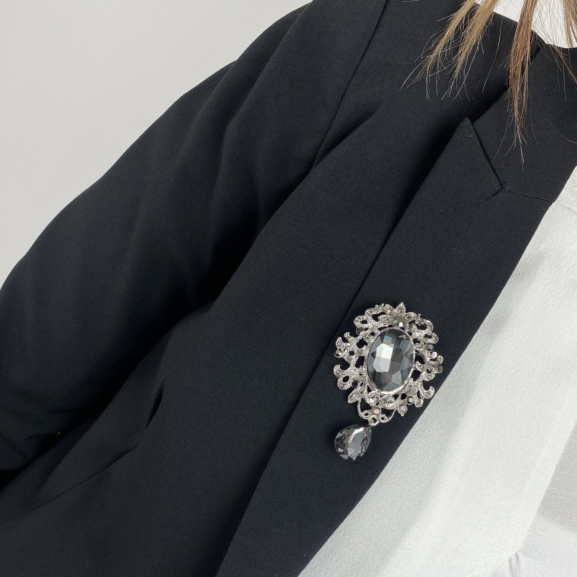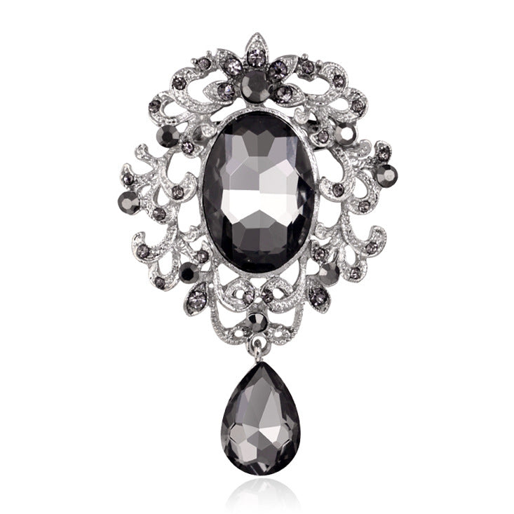 Această broșă decorativă în stil baroc este împodobită cu zirconiu cubic. Prezintă o încuietoare tip ac de siguranță care poate fi ușor atașată la orice tip de îmbrăcăminte sau accesoriu.