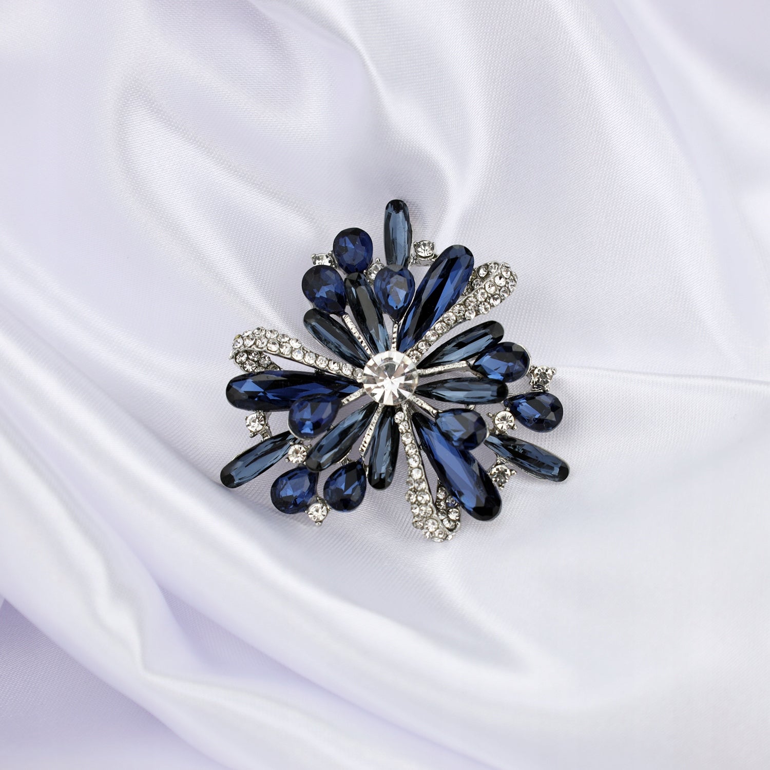 O broșă decorativă în formă de floare, împodobită cu zirconii albe și pietre albastre. Prezintă o încuietoare tip ac de siguranță care se atașează ușor la orice articol vestimentar sau accesoriu. Acul de siguranță menține piesa la locul ei în permanență, așa că nu trebuie să vă faceți griji că o veți desprinde accidental sau o veți pierde. Bijuteria perfectă pentru un banchet. Un plus perfect pentru ținuta dvs. pentru un banchet sau o întâlnire de afaceri.