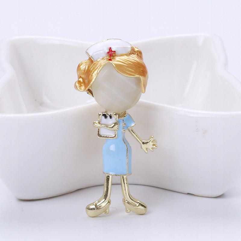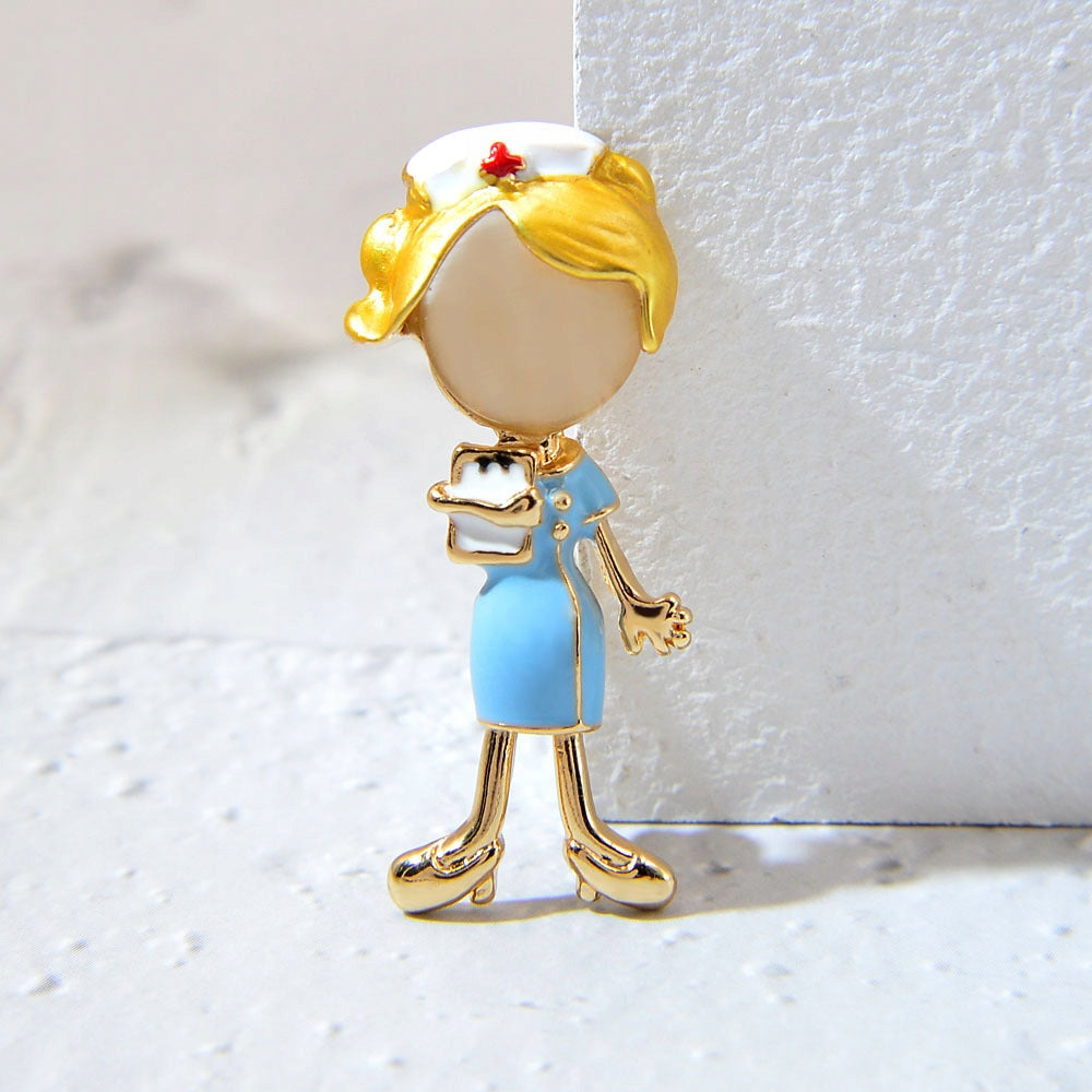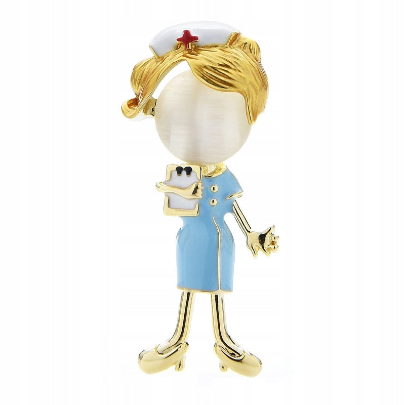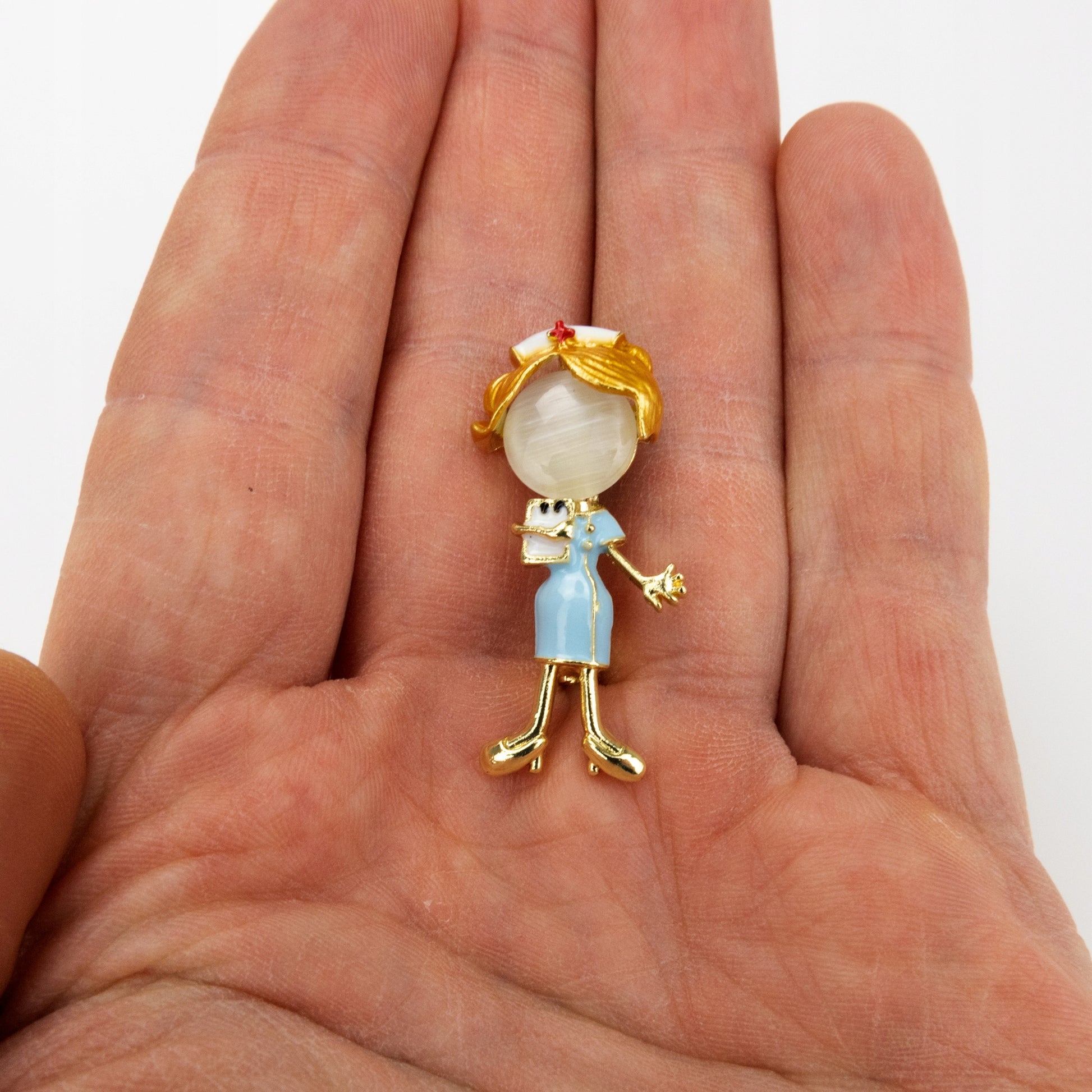 O broșă decorativă din argint în formă de asistentă medicală (ordonanță medicală) care ține un caiet. Bijuteria are o încuietoare tip ac de siguranță care se atașează ușor la orice articol vestimentar sau accesoriu. Acul menține bijuteria la locul ei în permanență, așa că nu trebuie să vă faceți griji că se va desprinde accidental și va fi pierdută. Cadoul perfect pentru o asistentă medicală.