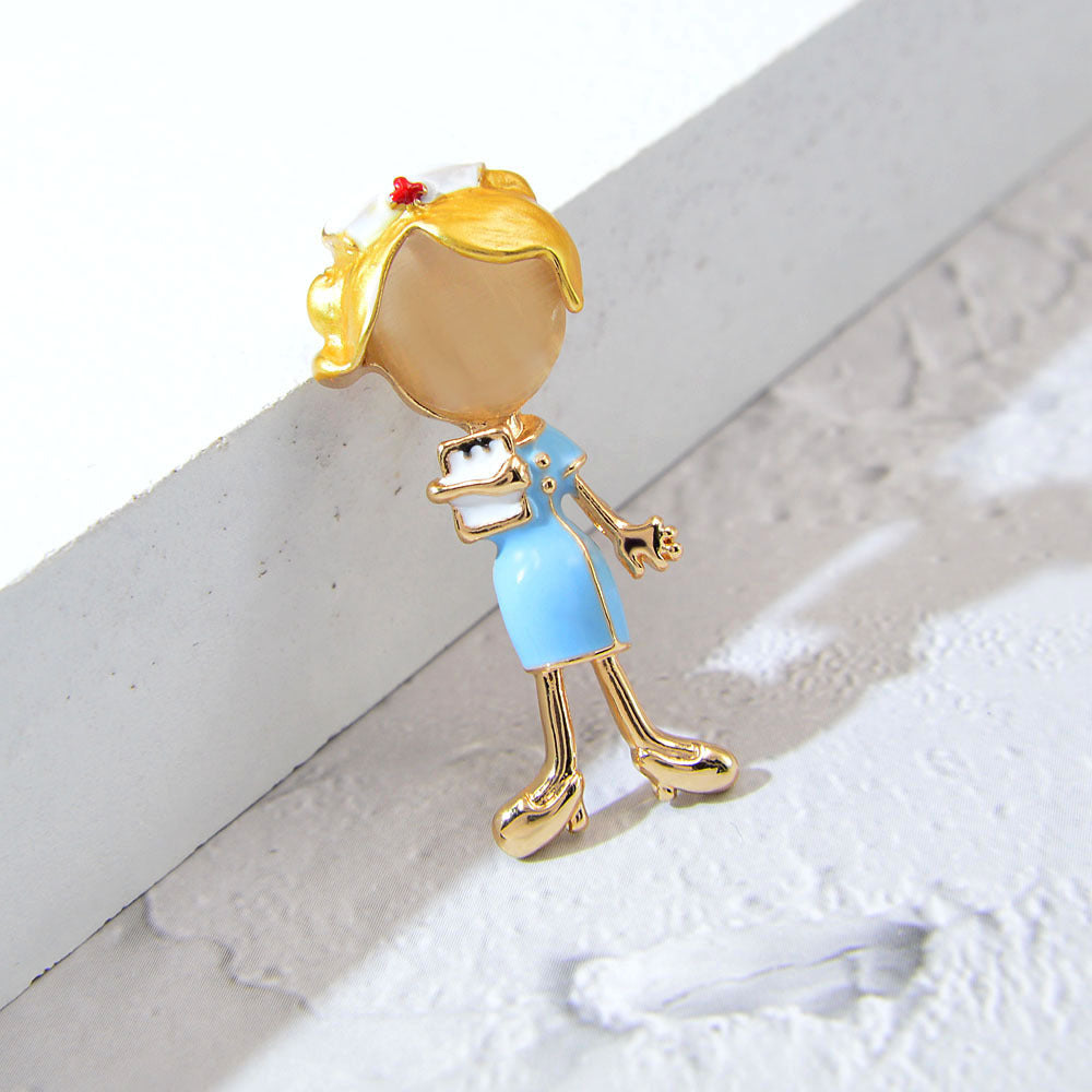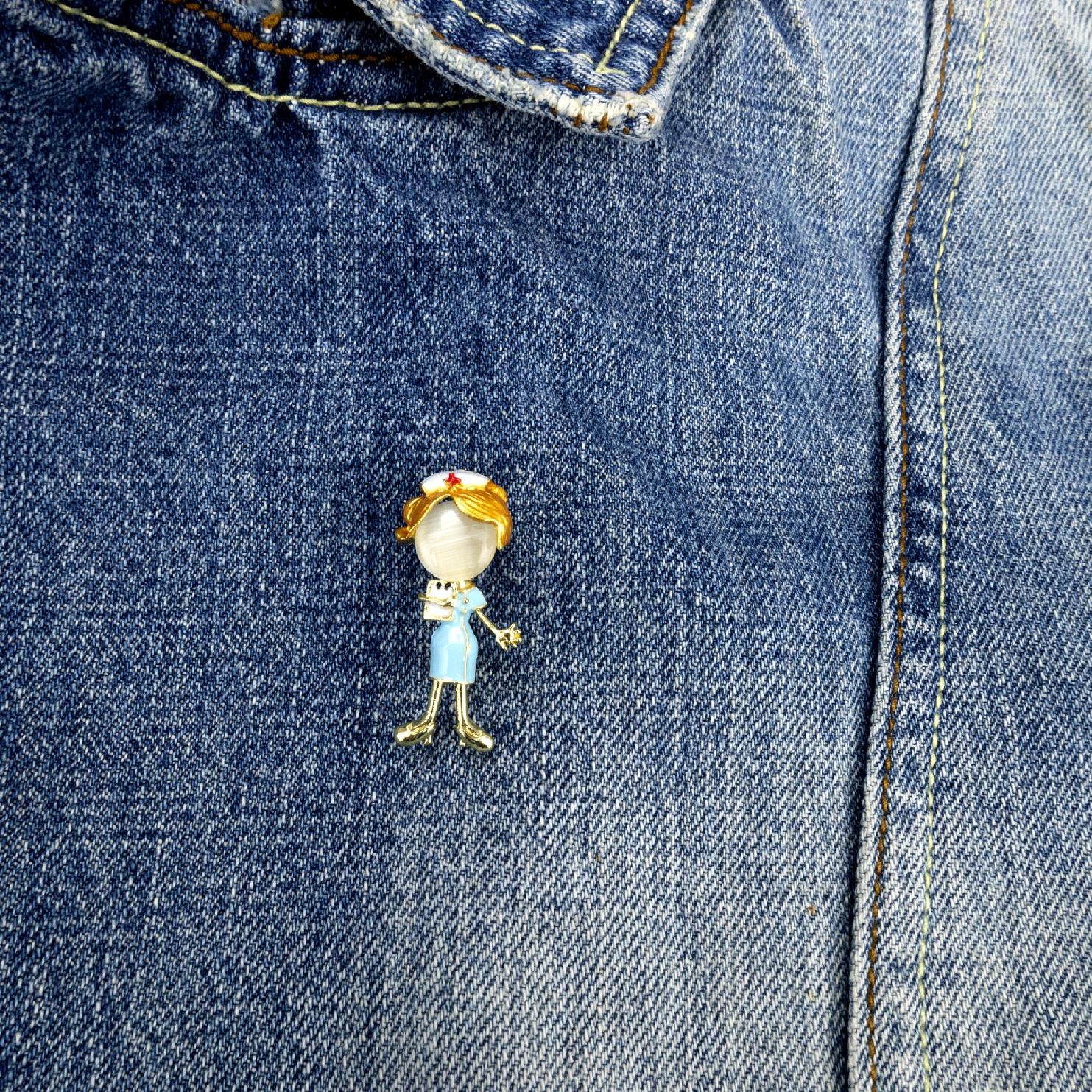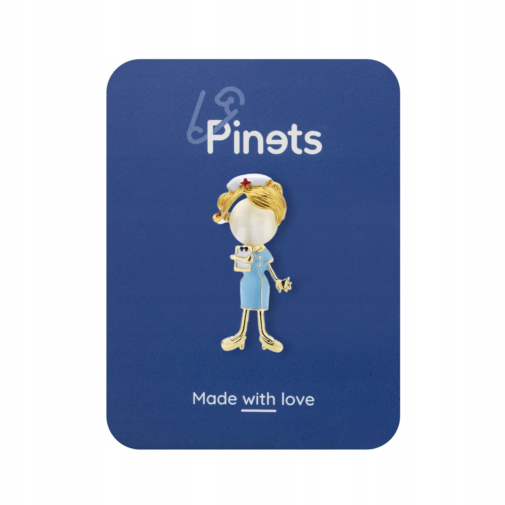 O broșă decorativă din argint în formă de asistentă medicală (ordonanță medicală) care ține un caiet. Bijuteria are o încuietoare tip ac de siguranță care se atașează ușor la orice articol vestimentar sau accesoriu. Acul menține bijuteria la locul ei în permanență, așa că nu trebuie să vă faceți griji că se va desprinde accidental și va fi pierdută. Cadoul perfect pentru o asistentă medicală.