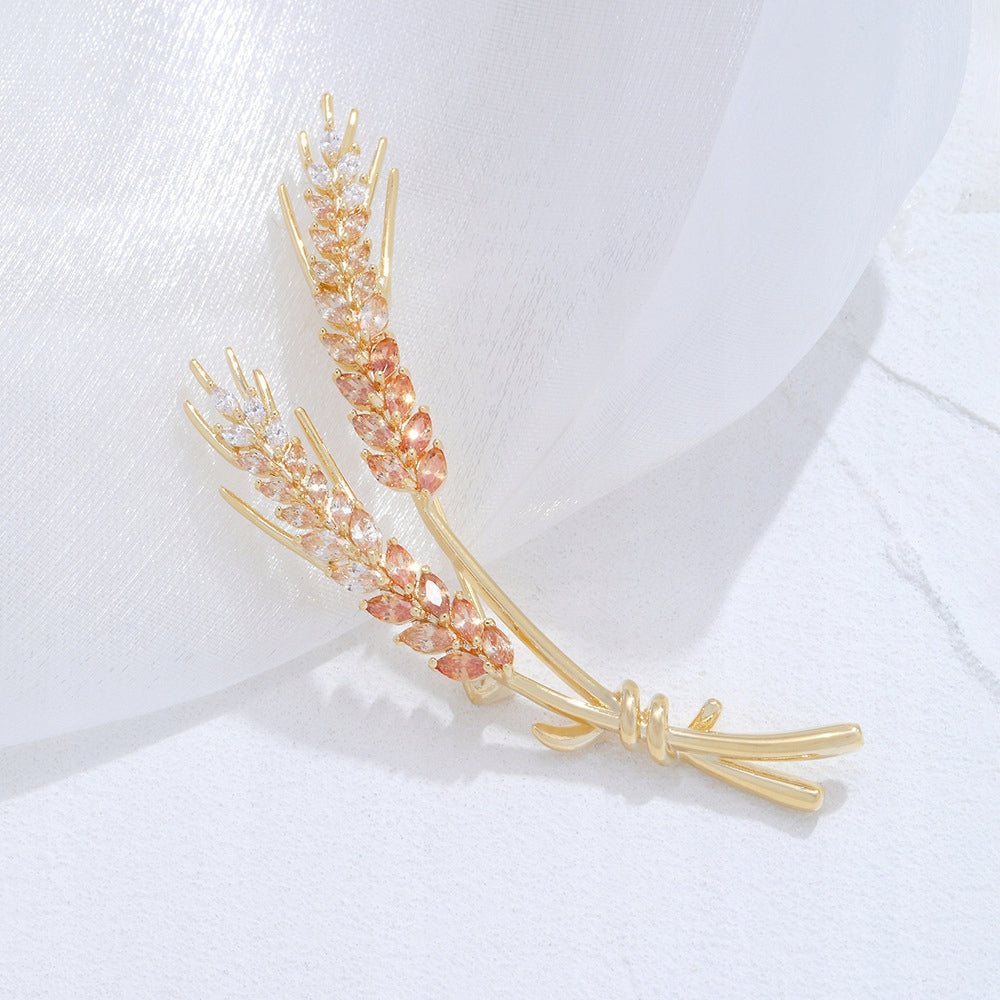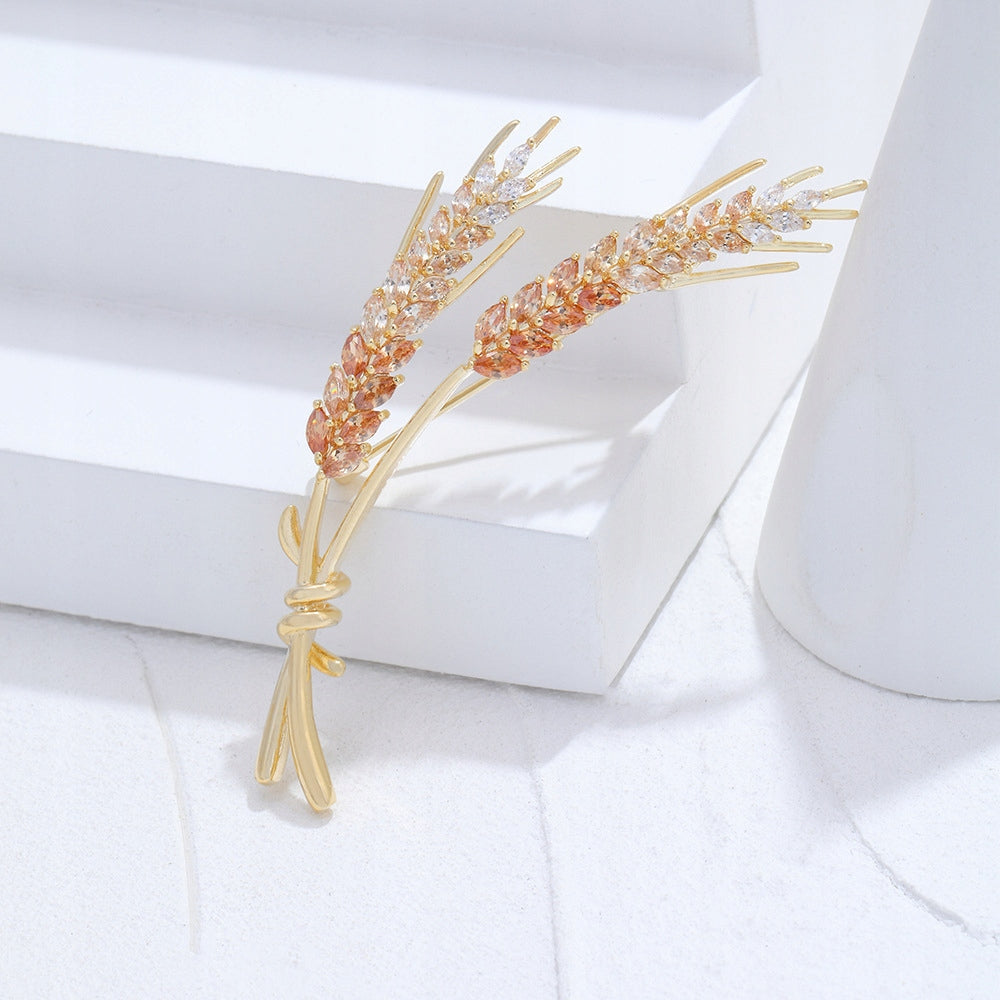 Șuvițe de grâu - broșă placată cu aur de 14K cu zirconiu cubic