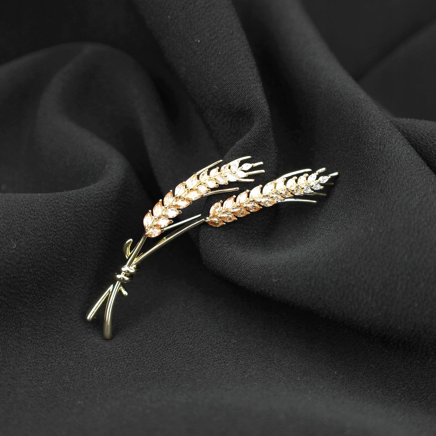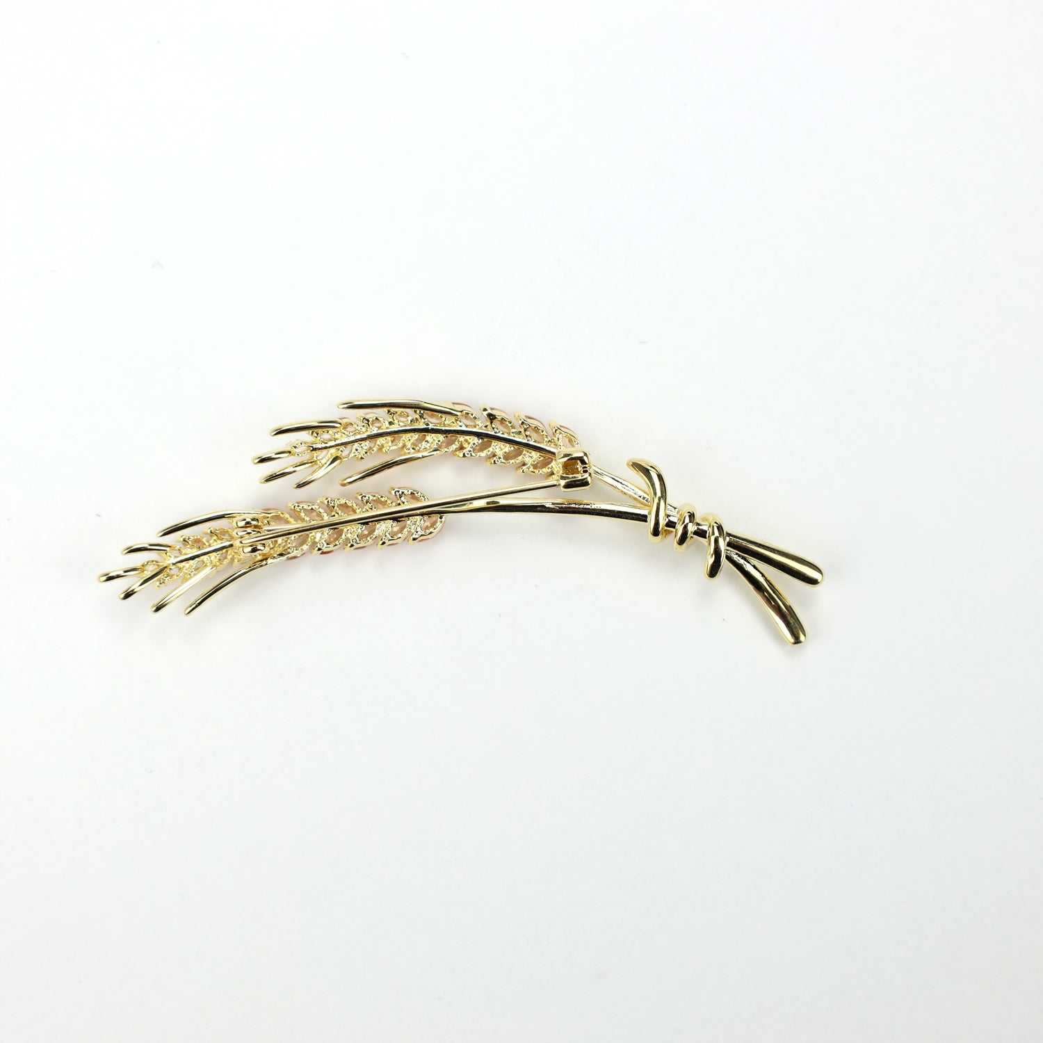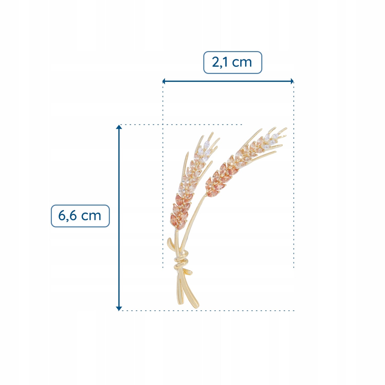 Această broșă decorativă, în formă de doi spice de grâu, este împodobită cu zirconiu cubic și placată cu aur de 14 karate. Are o încuietoare tip ac de siguranță care se atașează ușor la orice articol vestimentar sau accesoriu. Acul fixează bijuteria în siguranță, așa că nu trebuie să vă faceți griji că o veți desprinde accidental și o veți pierde. O idee de cadou perfectă pentru femei.