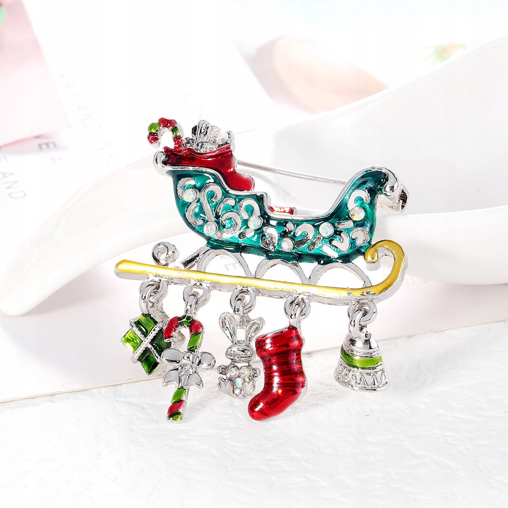 Sania lui Moș Crăciun cu cadouri - broșă de Crăciun
