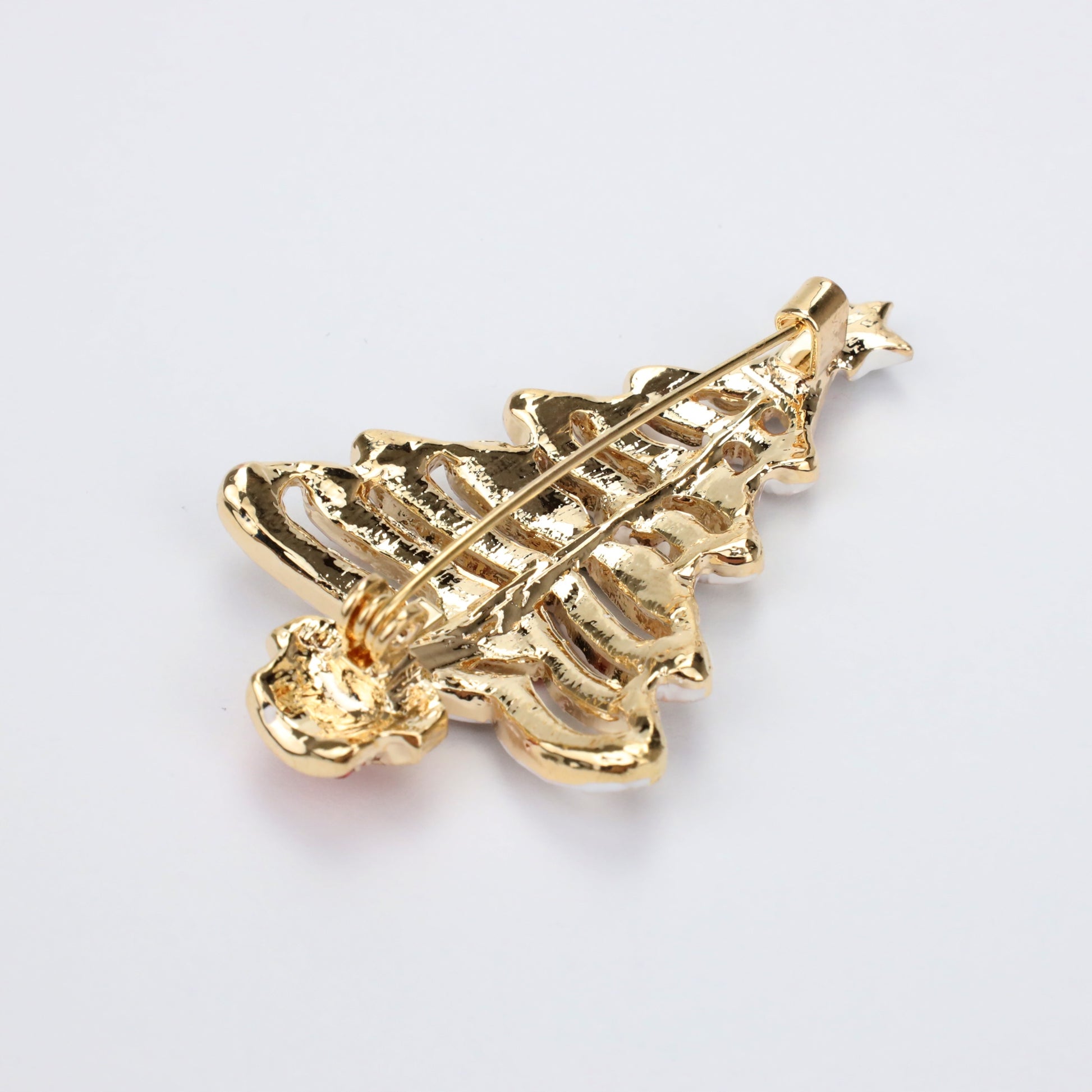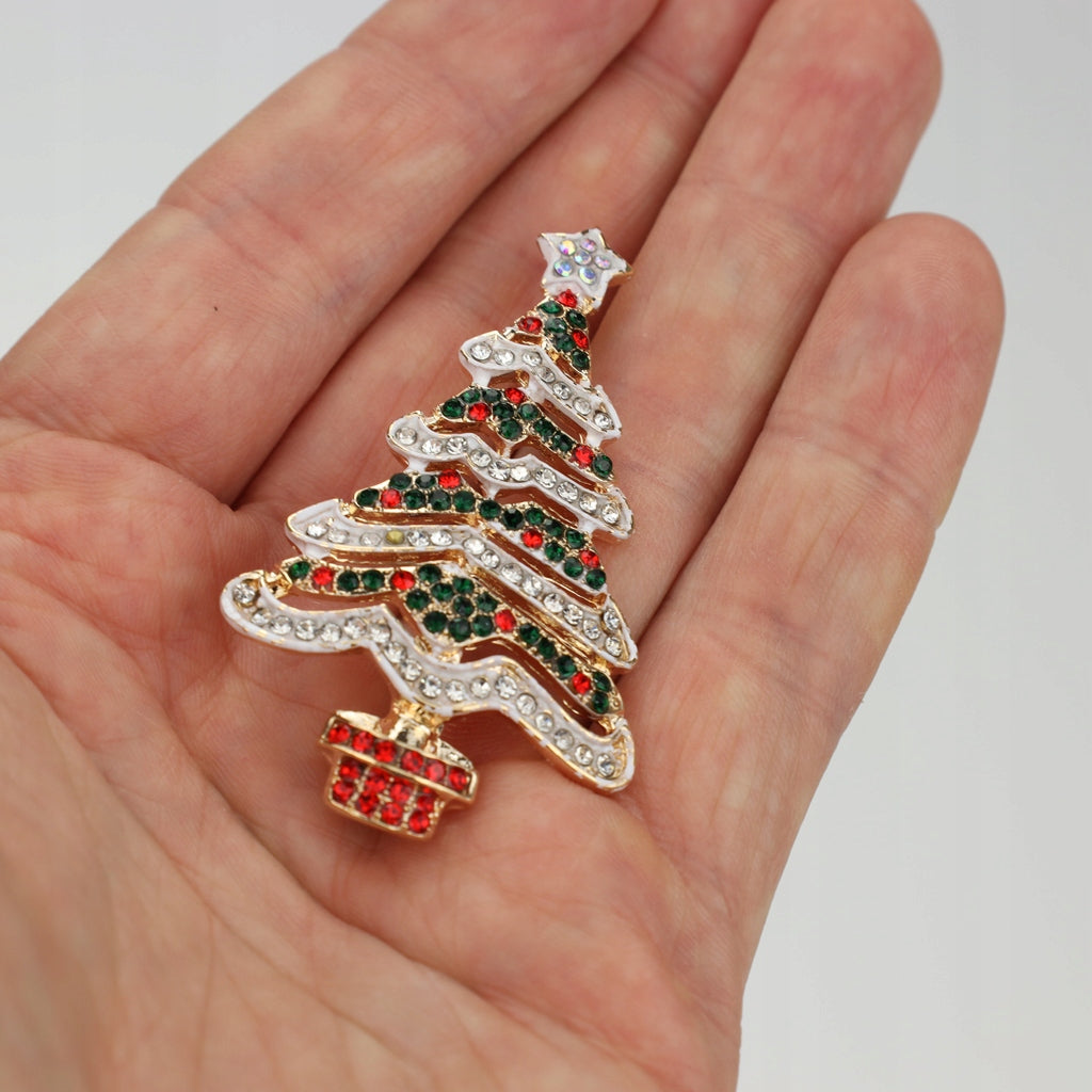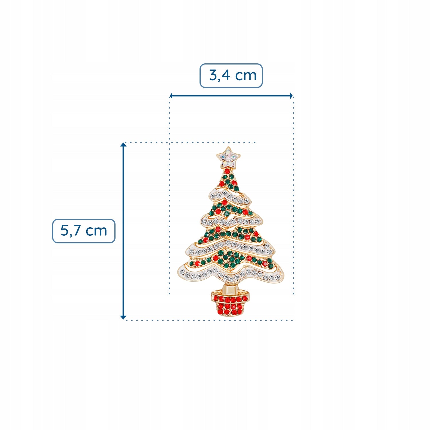 O broșă decorativă în formă de brad de Crăciun, cu globuri, un lanț alb și o stea, împodobită cu zirconii colorate. Prezintă o încuietoare tip ac de siguranță care se atașează ușor la orice articol vestimentar sau accesoriu. Acul fixează bijuteria în siguranță, așa că nu trebuie să vă faceți griji că o veți desprinde accidental sau o veți pierde. Un plus minunat pentru ținuta dvs. de Crăciun. Cadoul perfect de Crăciun.