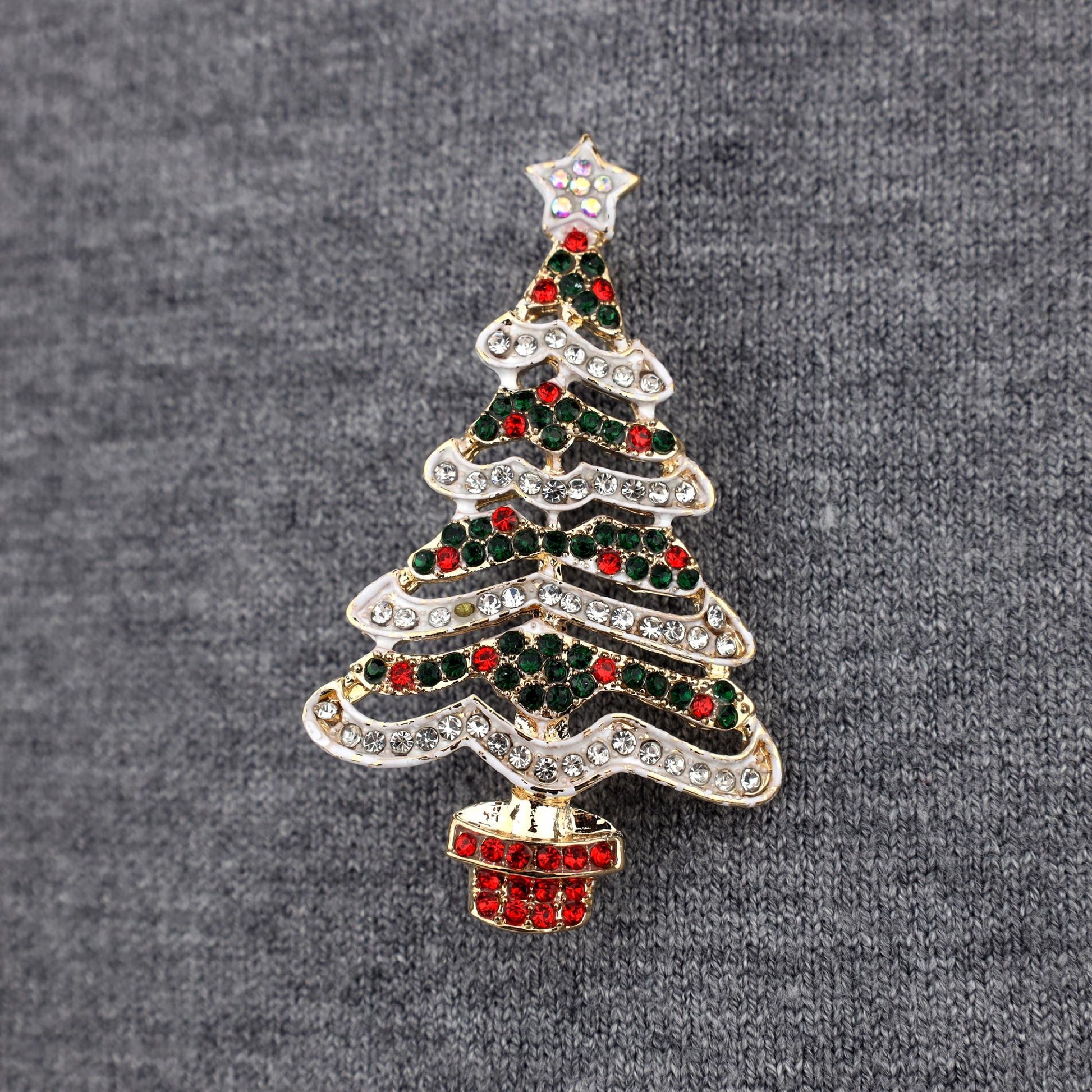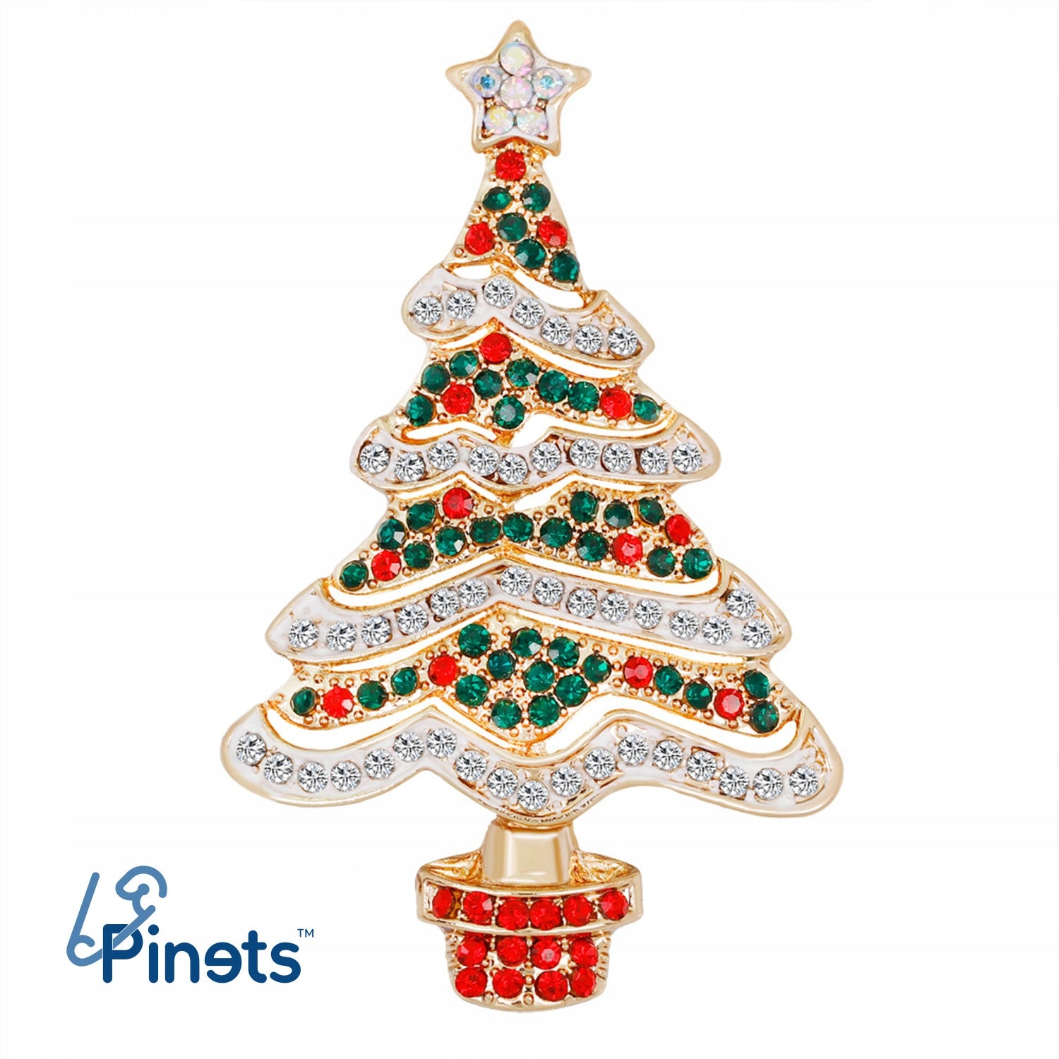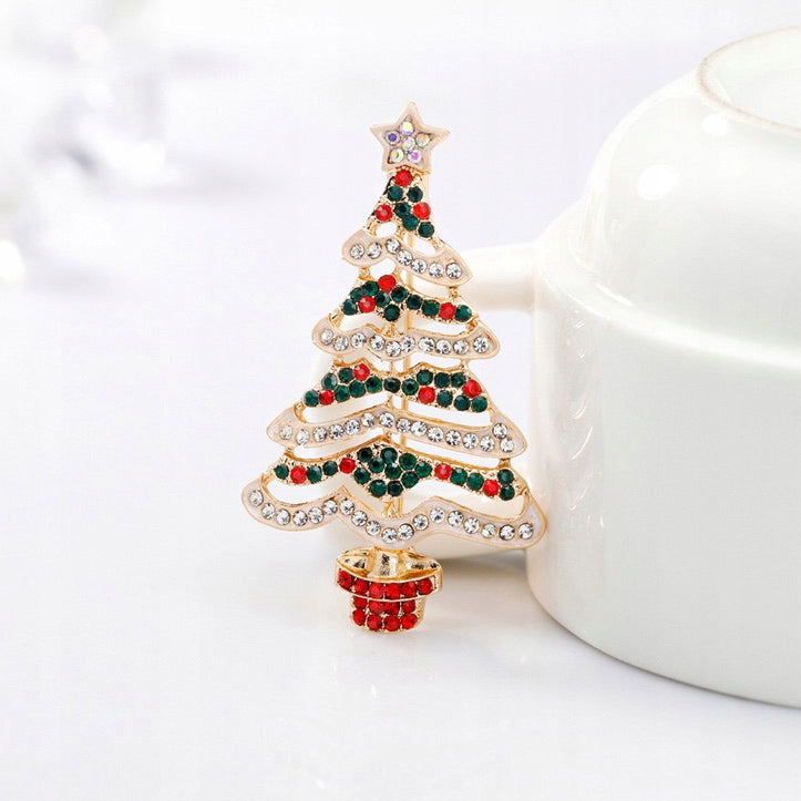 O broșă decorativă în formă de brad de Crăciun, cu globuri, un lanț alb și o stea, împodobită cu zirconii colorate. Prezintă o încuietoare tip ac de siguranță care se atașează ușor la orice articol vestimentar sau accesoriu. Acul fixează bijuteria în siguranță, așa că nu trebuie să vă faceți griji că o veți desprinde accidental sau o veți pierde. Un plus minunat pentru ținuta dvs. de Crăciun. Cadoul perfect de Crăciun.