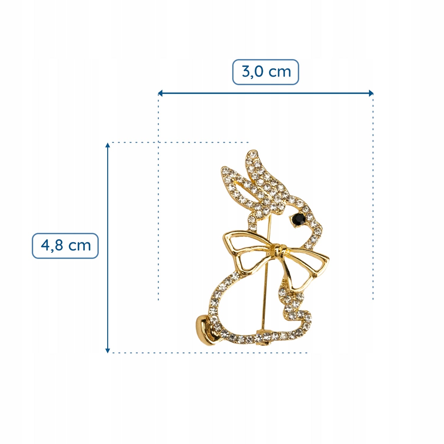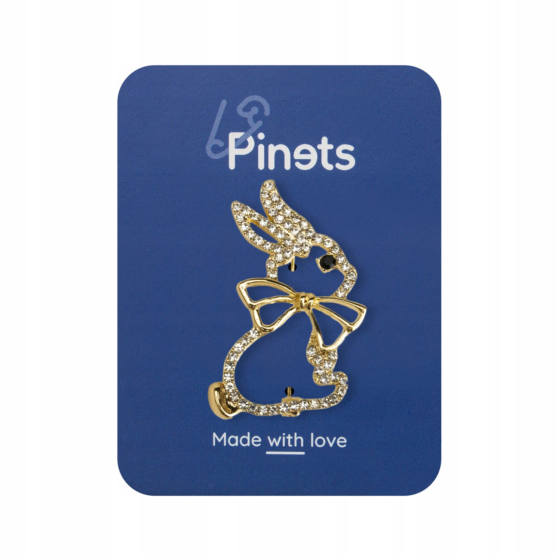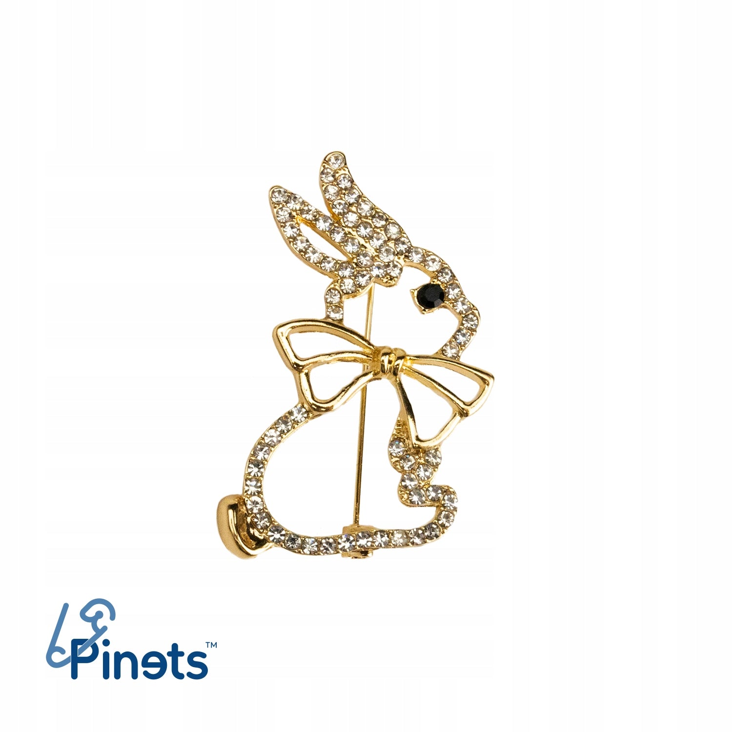 O broșă decorativă în formă de iepuraș auriu cu o fundă mare, umplută cu zirconii albe. Prezintă o încuietoare tip ac de siguranță care se atașează ușor la orice articol vestimentar sau accesoriu. Acul de siguranță menține piesa la locul ei în permanență, așa că nu trebuie să vă faceți griji că o veți desprinde sau pierde accidental. Această broșă Pinets din colecția Animals este garantată a fi un cadou minunat pentru orice femeie.