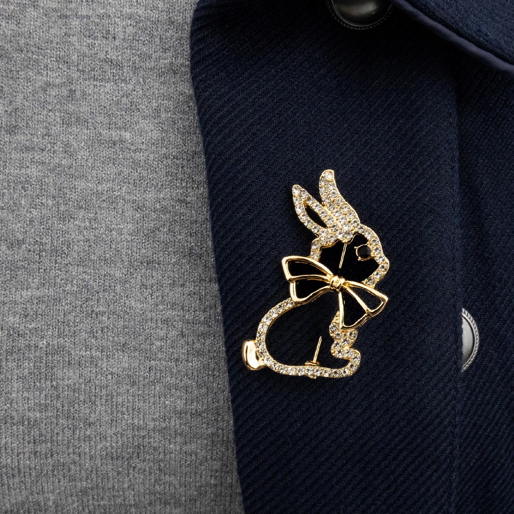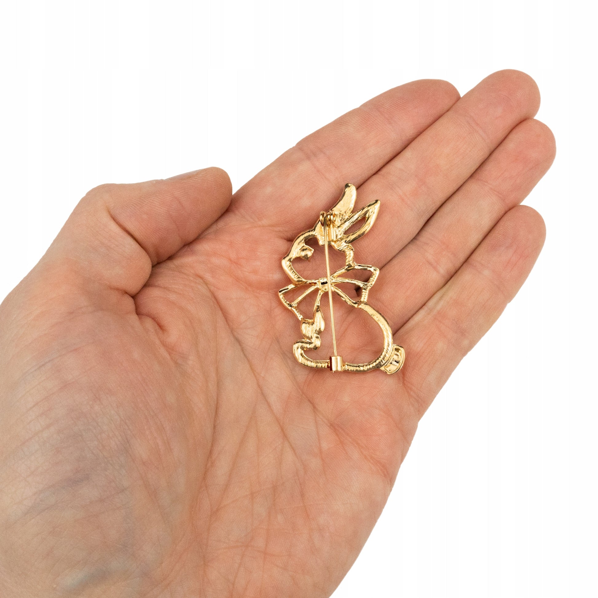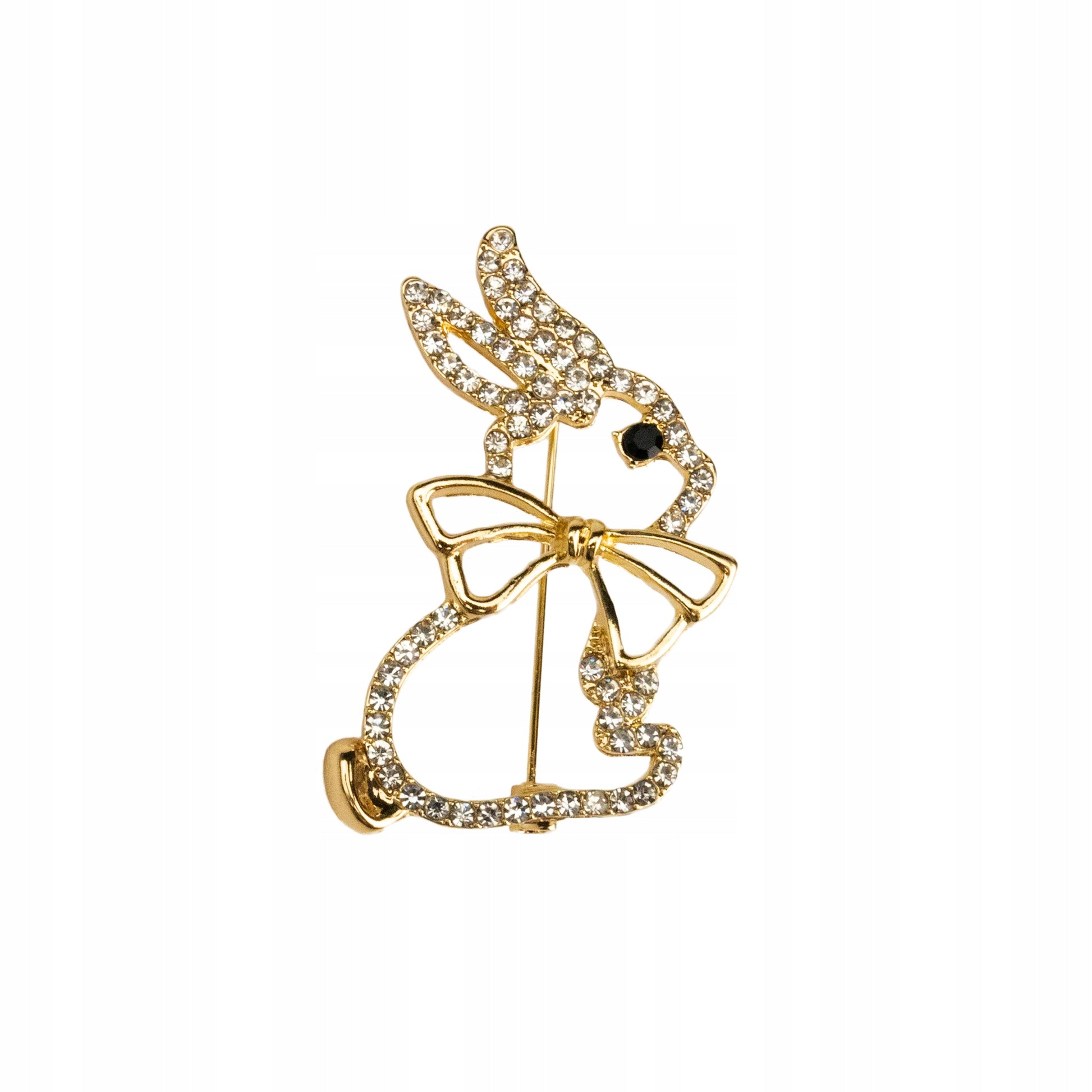 O broșă decorativă în formă de iepuraș auriu cu o fundă mare, umplută cu zirconii albe. Prezintă o încuietoare tip ac de siguranță care se atașează ușor la orice articol vestimentar sau accesoriu. Acul de siguranță menține piesa la locul ei în permanență, așa că nu trebuie să vă faceți griji că o veți desprinde sau pierde accidental. Această broșă Pinets din colecția Animals este garantată a fi un cadou minunat pentru orice femeie.