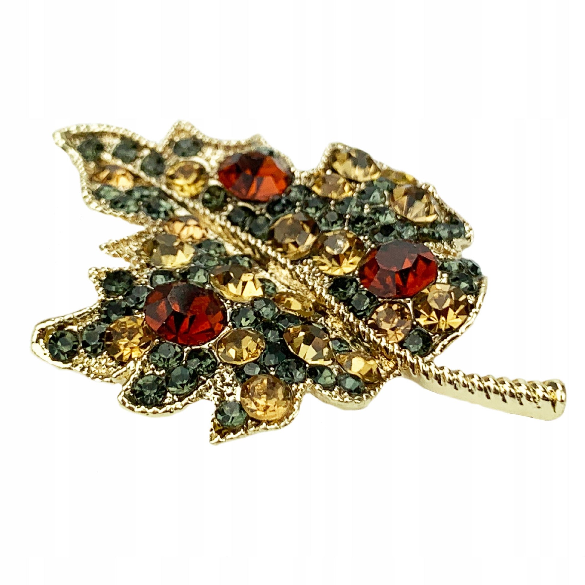 O broșă decorativă în formă de foiță de aur, împodobită cu zirconiu cubic. Prezintă o încuietoare tip ac de siguranță care se atașează ușor la orice articol vestimentar sau accesoriu. Acul fixează bijuteria în permanență, așa că nu trebuie să vă faceți griji că o veți putea desprinde accidental și pierde. Broșa este un cadou ideal pentru o femeie.