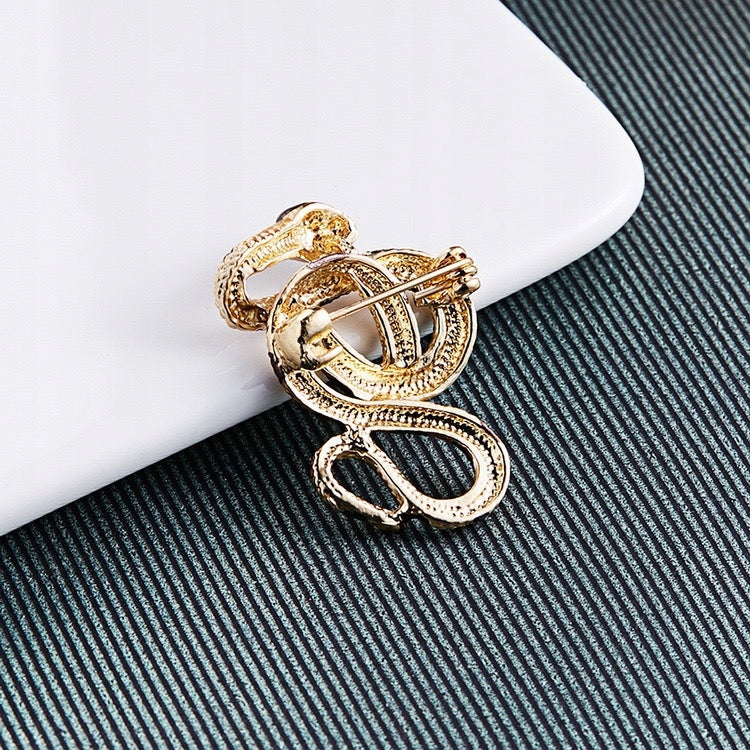 Broșă șarpe aurie cu zirconiu cubic