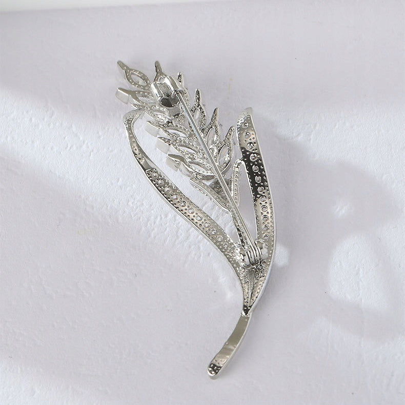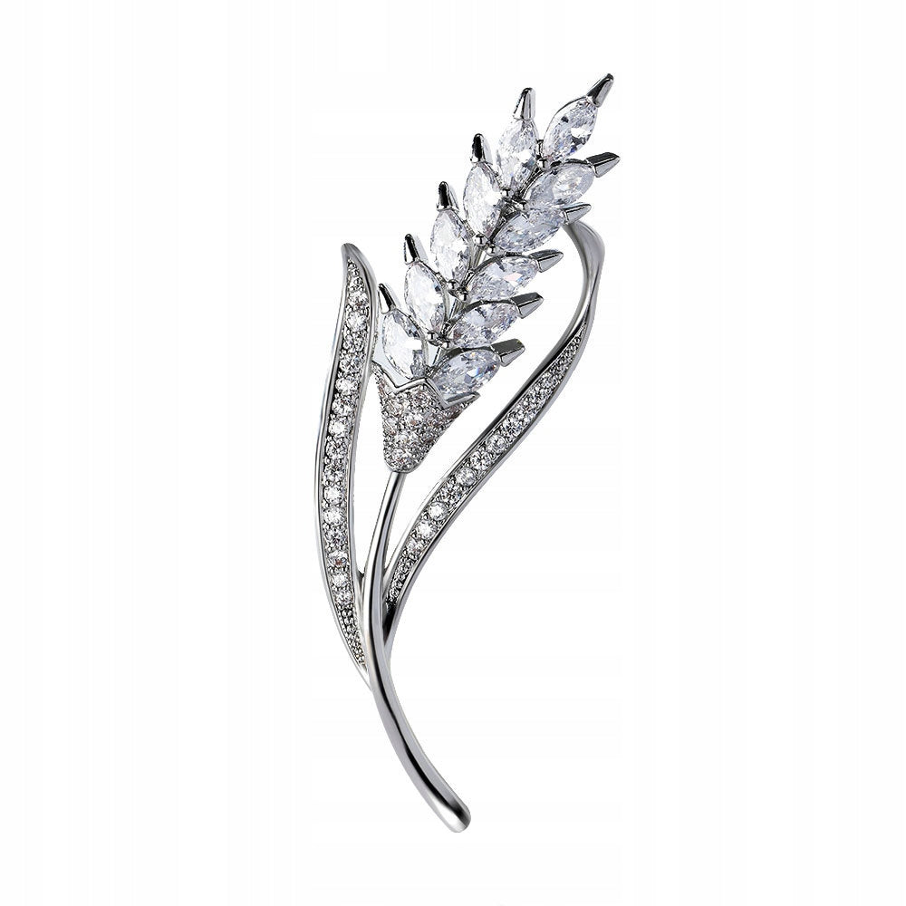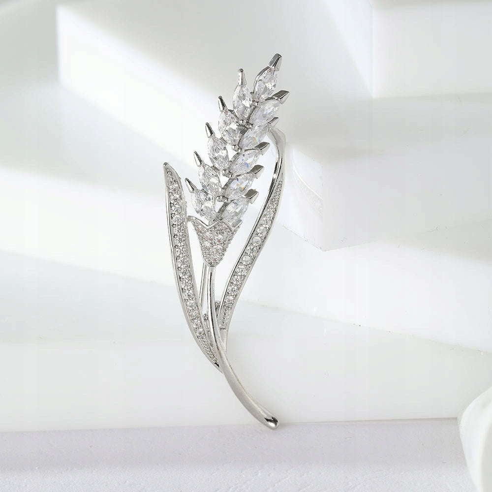 Spicul de grâu - broșă placată cu aur alb de 14K