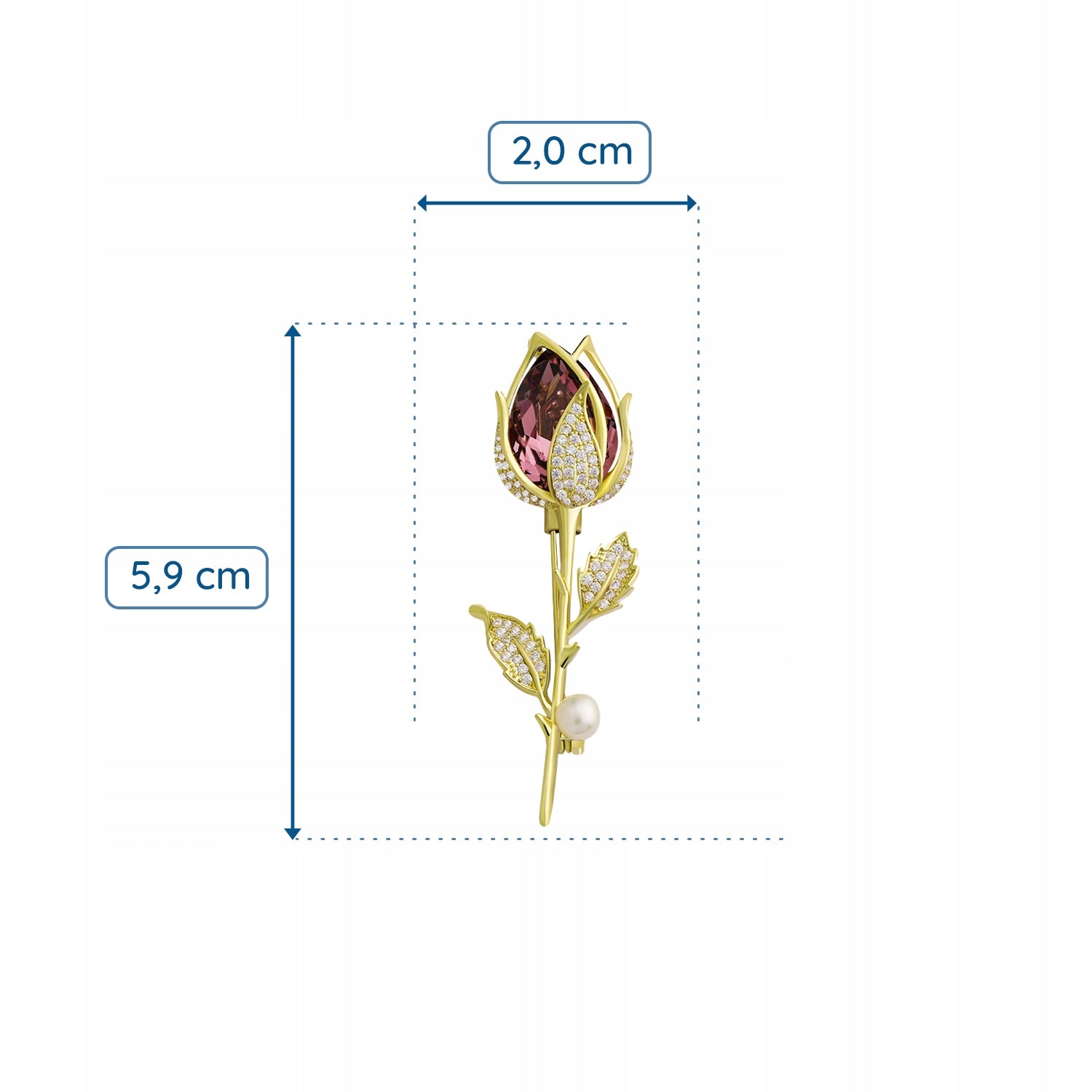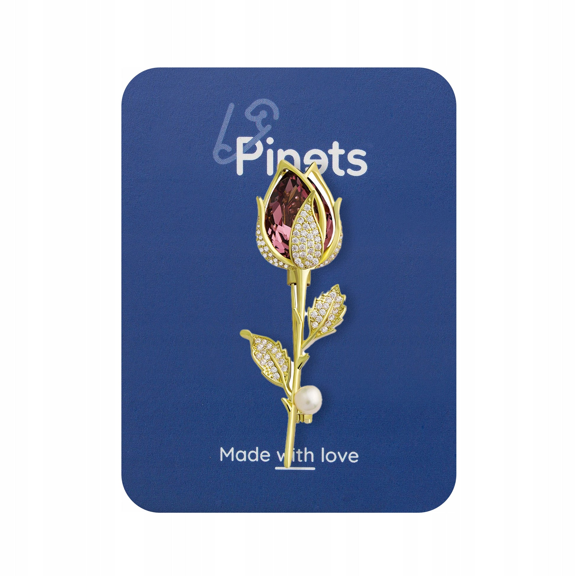 O broșă decorativă cu motiv de trandafir roz, placată cu aur de 14K și împodobită cu zirconiu cubic și o perlă. Prezintă o încuietoare tip ac de siguranță care se atașează ușor la orice articol vestimentar sau accesoriu. Acul menține bijuteria la locul ei în permanență, așa că nu trebuie să vă faceți griji că o veți desprinde accidental și o veți pierde. Cadoul perfect pentru orice femeie.