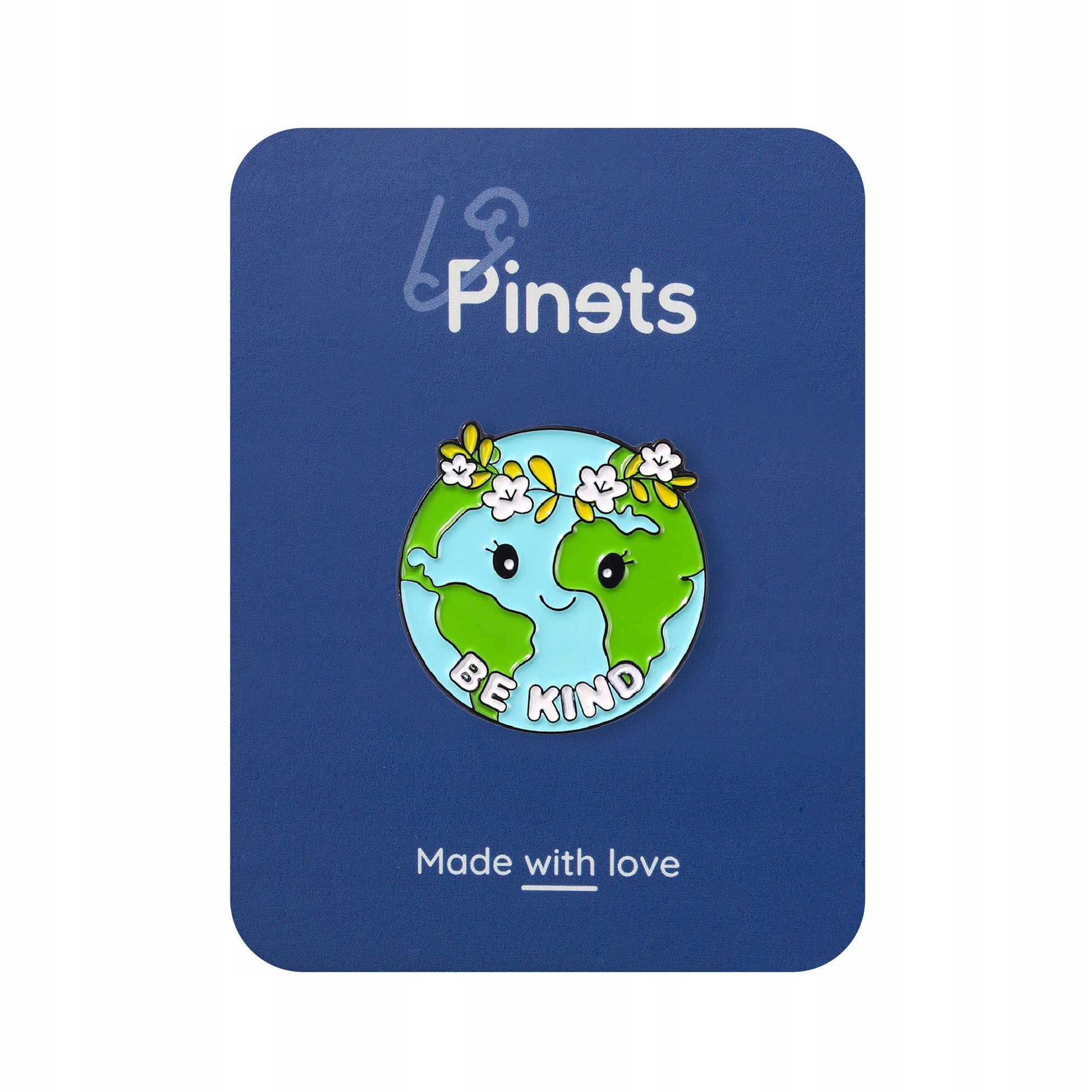 Această broșă rotundă emailată prezintă o planetă Pământ zâmbitoare cu o coroană și sloganul „Fii bun”. Provine dintr-o colecție de broșe ecologice care susțin protecția mediului. Broșa are un ac metalic, permițând atașarea sau îndepărtarea ușoară de pe orice tip de îmbrăcăminte fără a deteriora materialul. O idee grozavă de cadou pentru un ecologist.