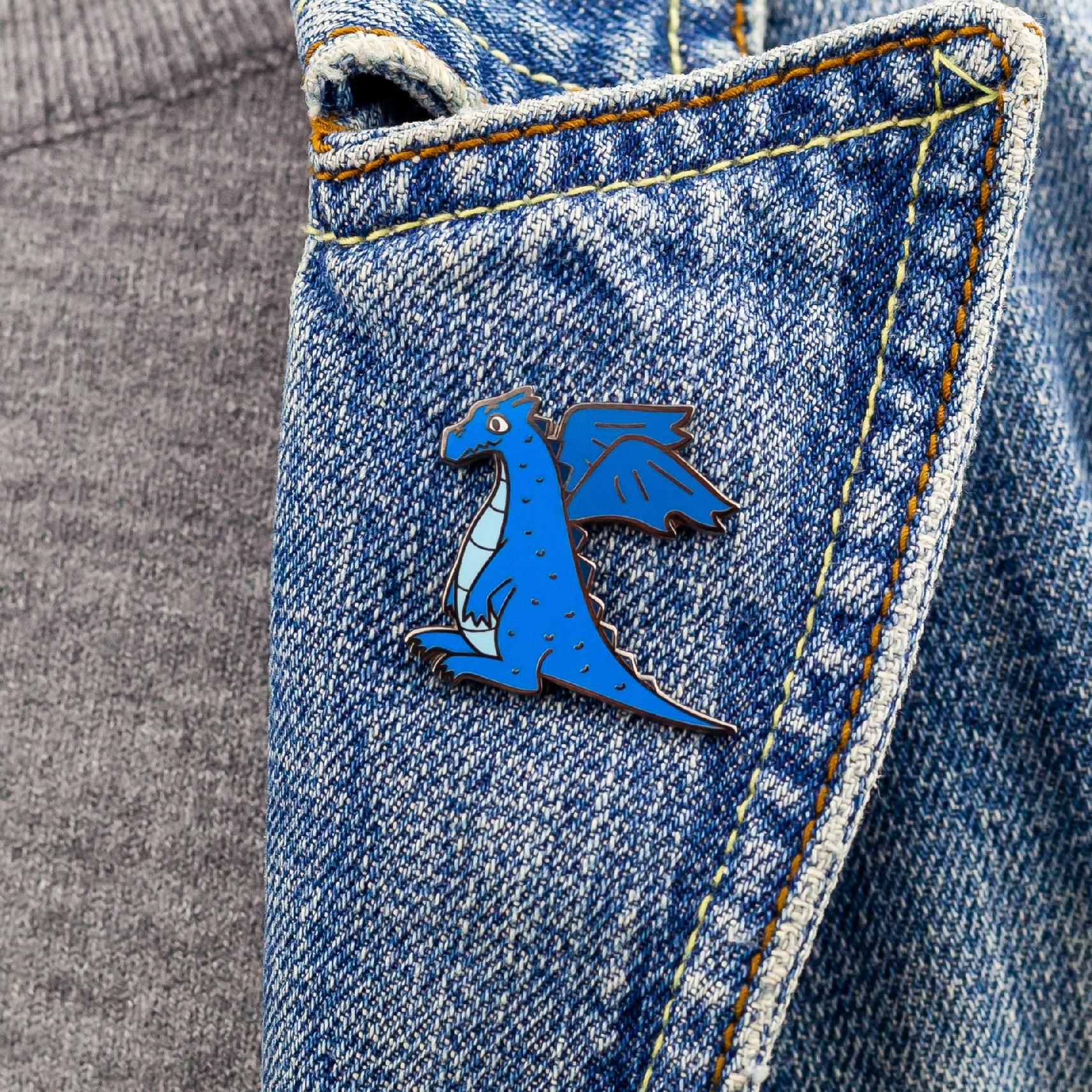 Această broșă de colecție prezintă un motiv cu un dragon zburător albastru. Prezintă un știft metalic, permițând atașarea ușoară la orice tip de îmbrăcăminte și îndepărtarea acesteia fără a deteriora materialul. Această broșă cu dragon albastru este o idee originală de cadou pentru copii și fanii dinozaurilor.