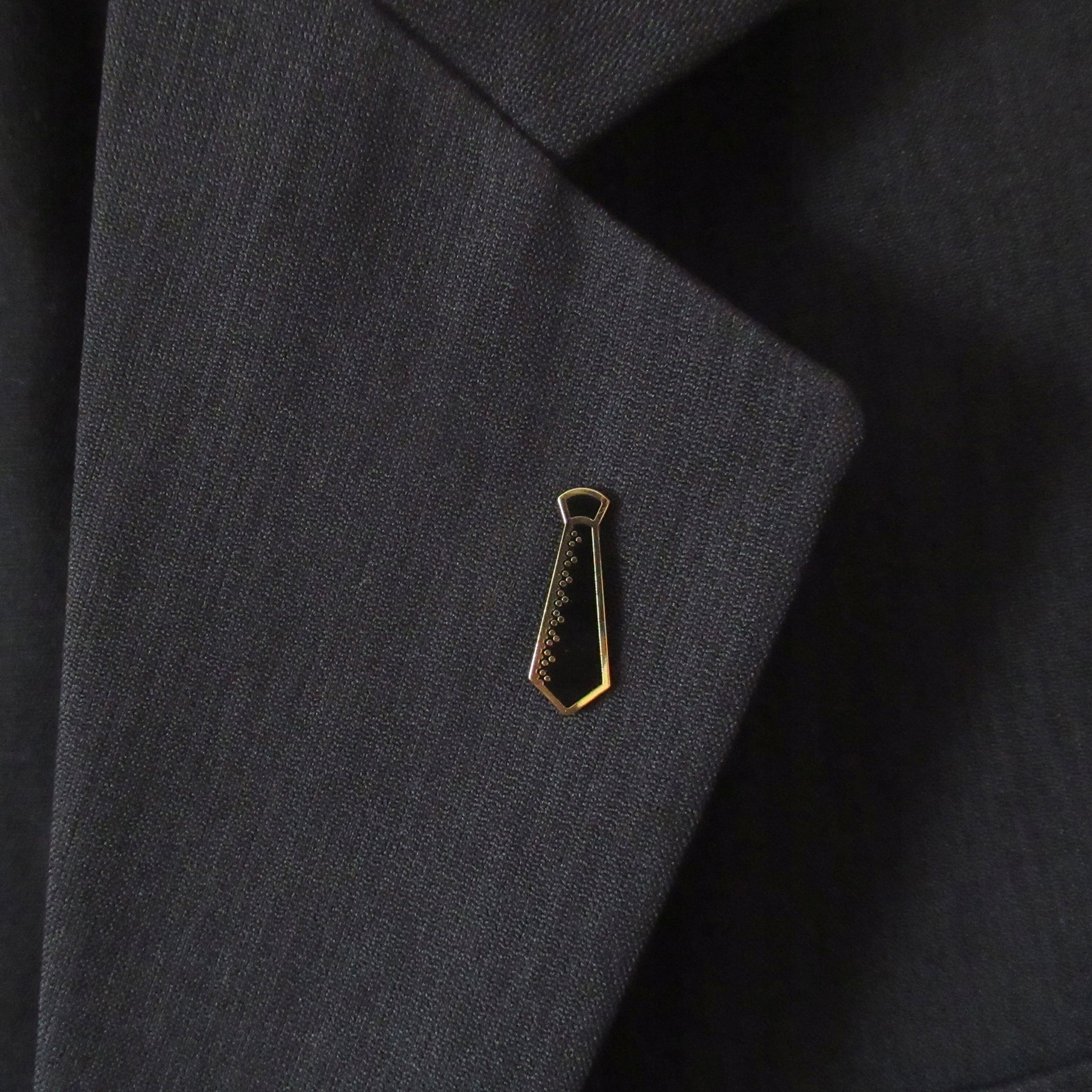 O broșă decorativă de nuntă cu motiv de cravată bărbătească neagră. Având o broșă metalică, poate fi ușor atașată la orice ținută și îndepărtată fără a deteriora materialul. Această broșă de cravată este o idee de cadou unică pentru invitații la nuntă.