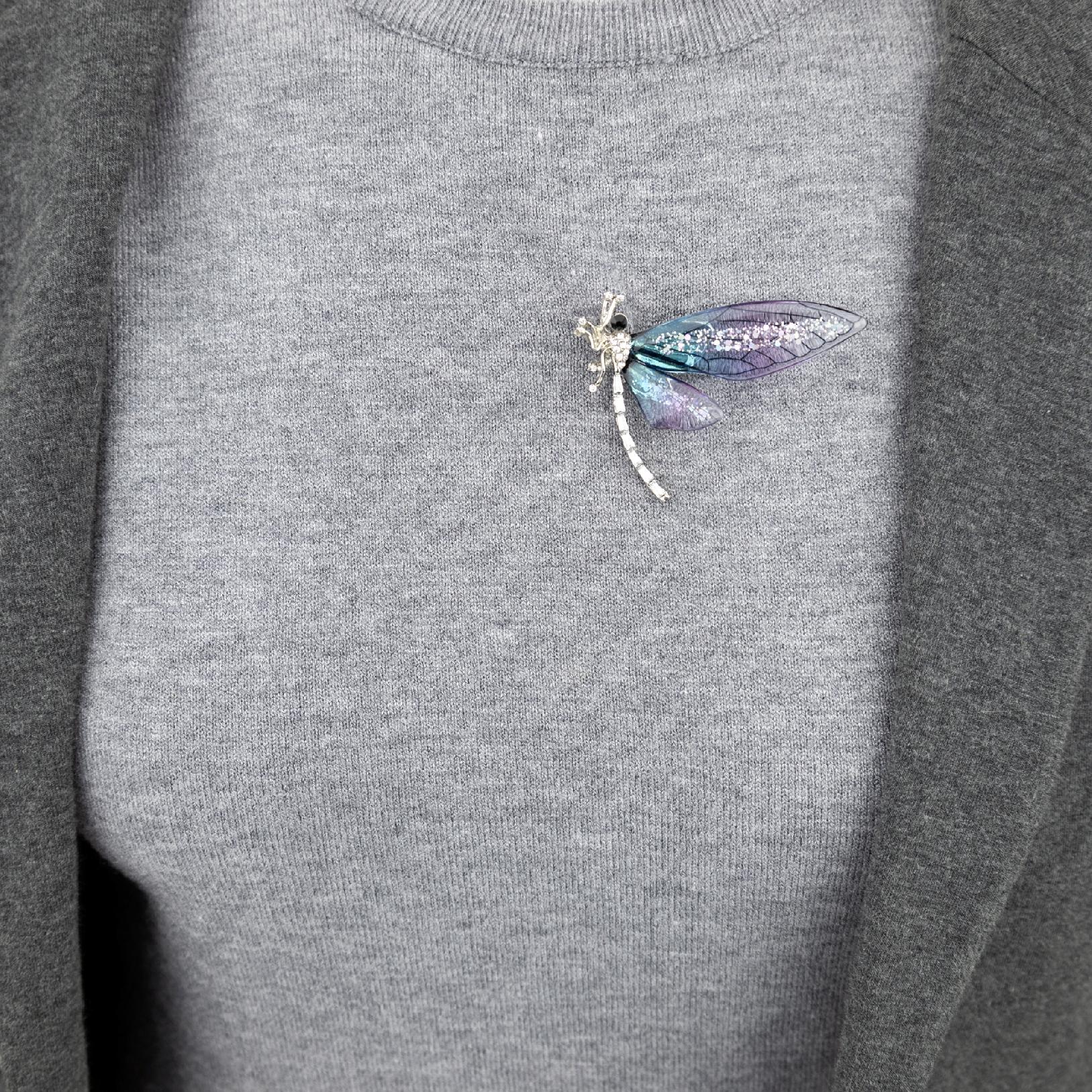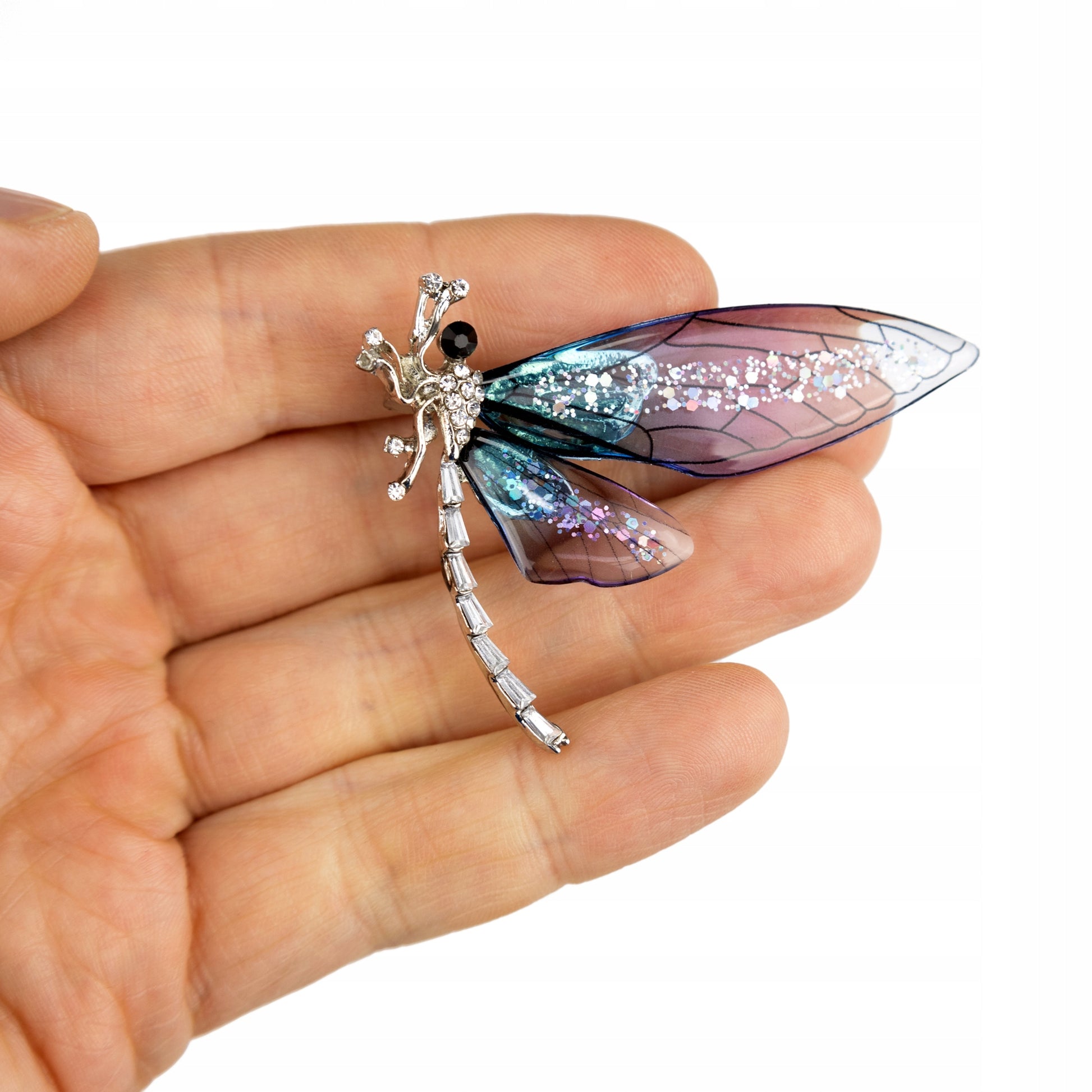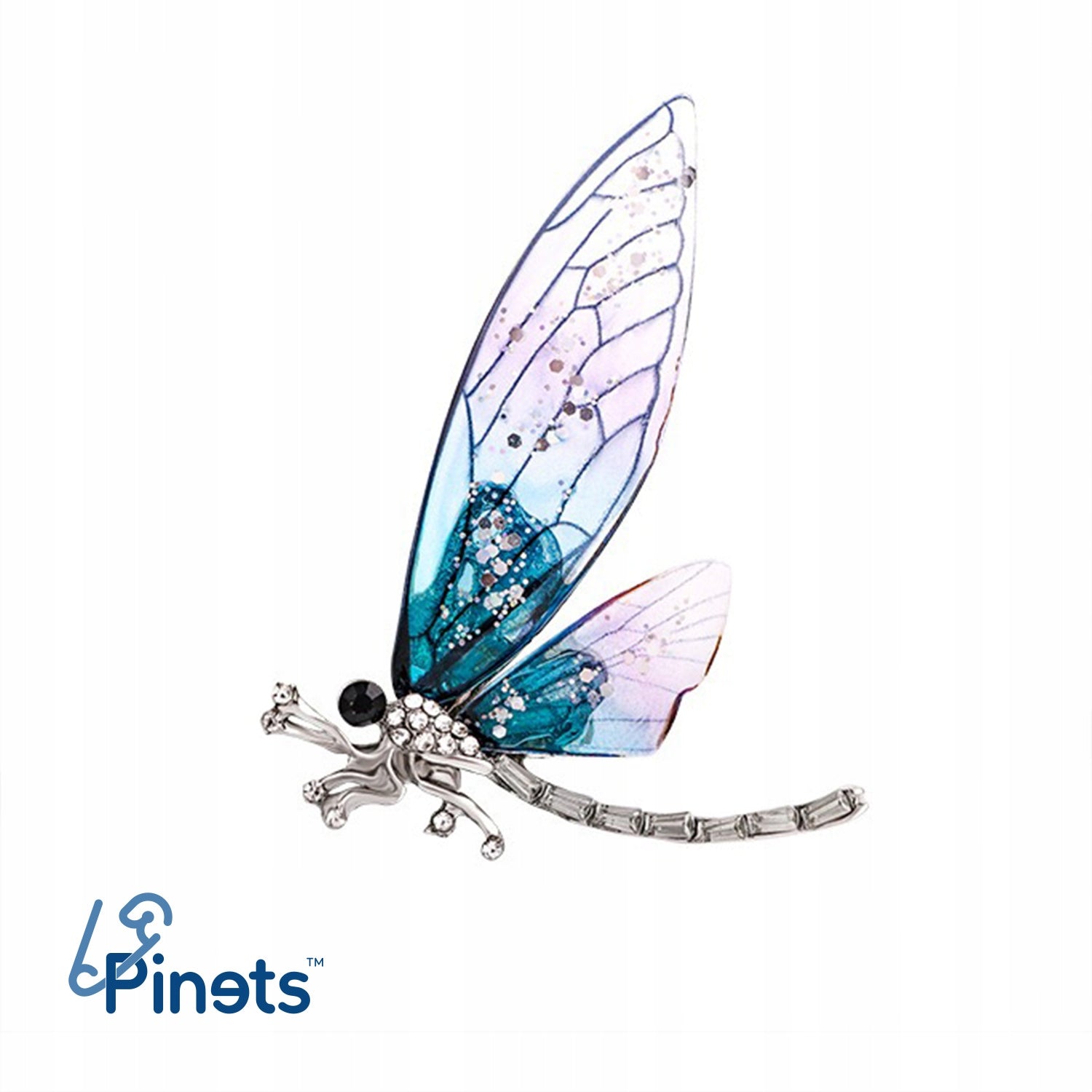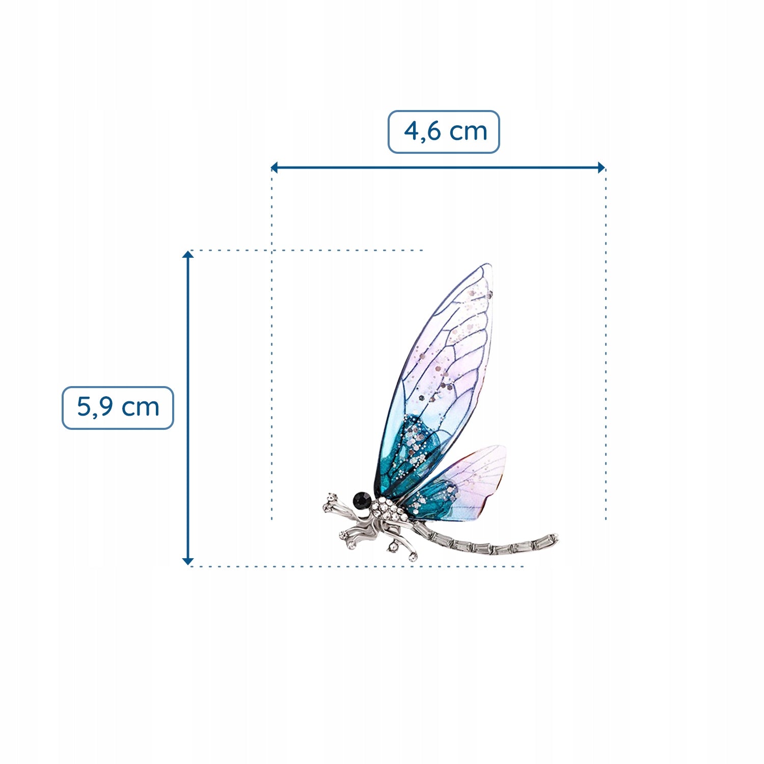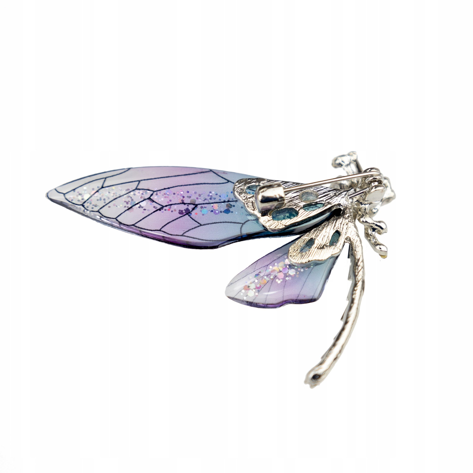 O broșă decorativă cu motiv de libelulă și aripi albastre și violet, împodobită cu zirconiu cubic. Realizată din metal și rășină, piesa are o încuietoare tip ac de siguranță care se atașează ușor la orice articol vestimentar sau accesoriu. Acul menține piesa la locul ei în permanență, așa că nu trebuie să vă faceți griji că o veți desprinde sau pierde accidental. O idee de cadou perfectă pentru femei.