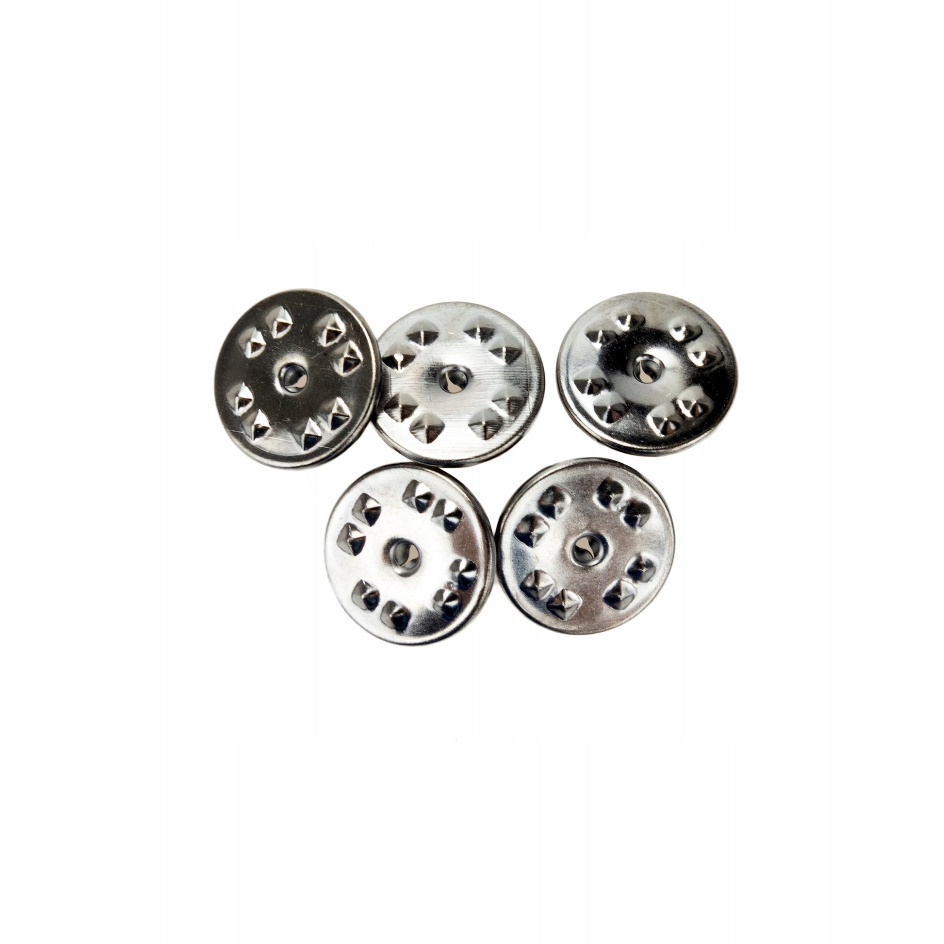 Acest set este format din cinci încuietori negre cu fluture, complet noi. Aceste încuietori se potrivesc oricărui model de insignă și au un diametru standard de 11 mm.
